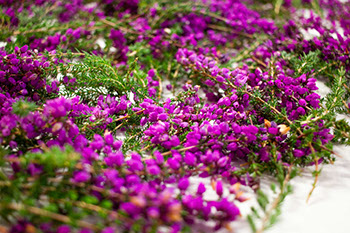 Nous réalisons deux récoltes par an, la première fin juillet avec un miel polyfloral : ronce, châtaigner, lotier, bruyères, salicaire, trèfle... et en septembre, nous récoltons un miel à dominante de bruyère vagabonde, dont 80 % de la représentation française se situe à Belle-Île ! Chaque année, nous faisons analyser notre miel, pour mieux déterminer les origines florales qui évoluent en fonction des conditions météorologiques.